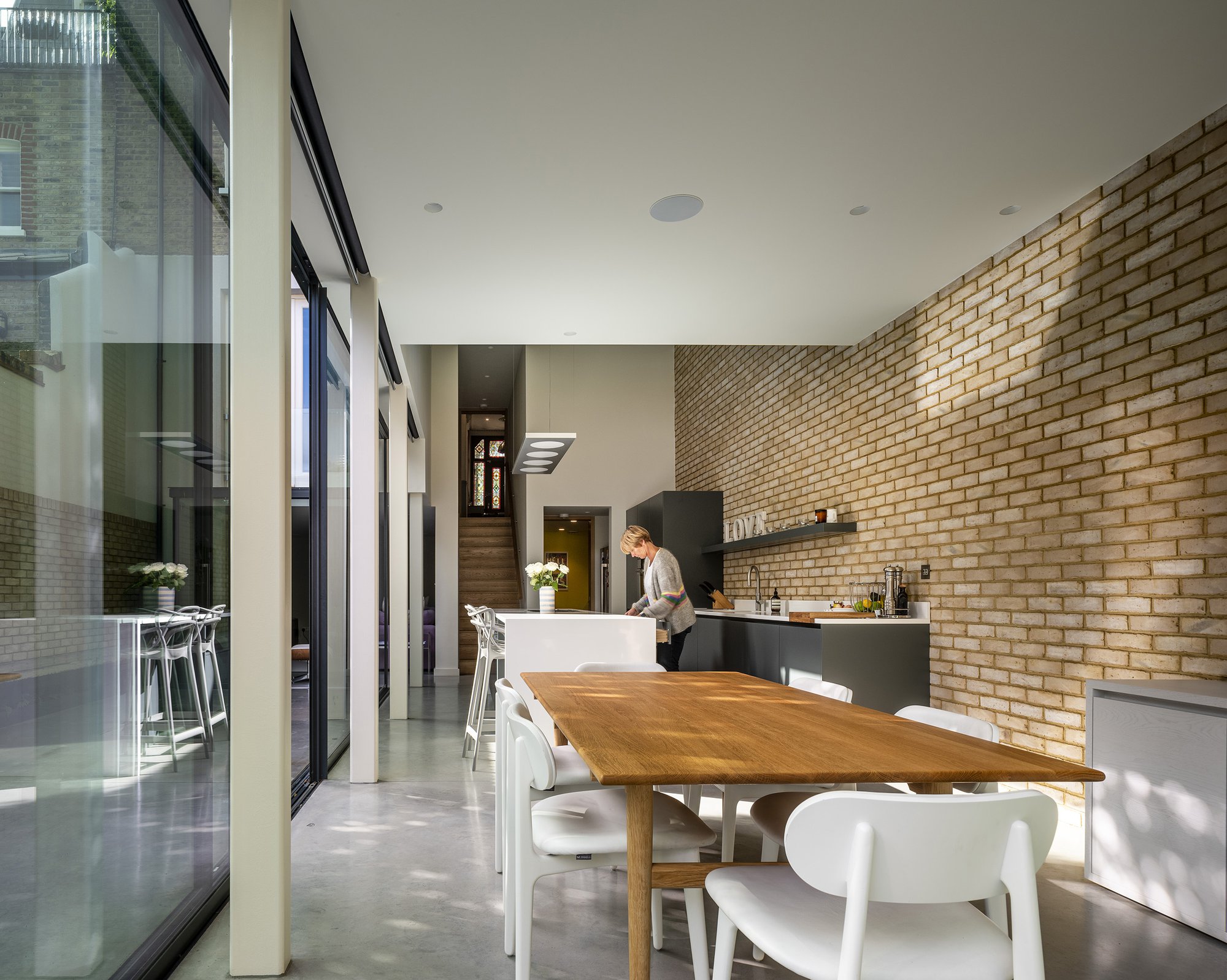 The remodelling of an large house in South London to provide a large kitchen and dining room with a better connection to the garden.
