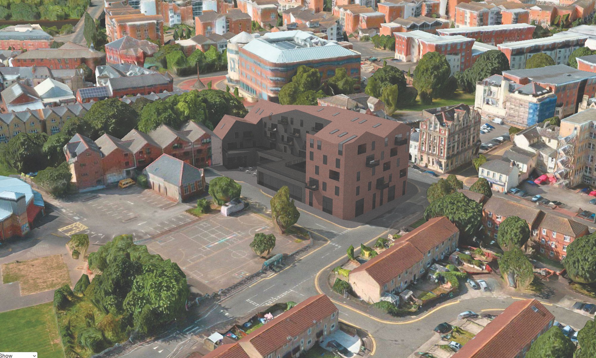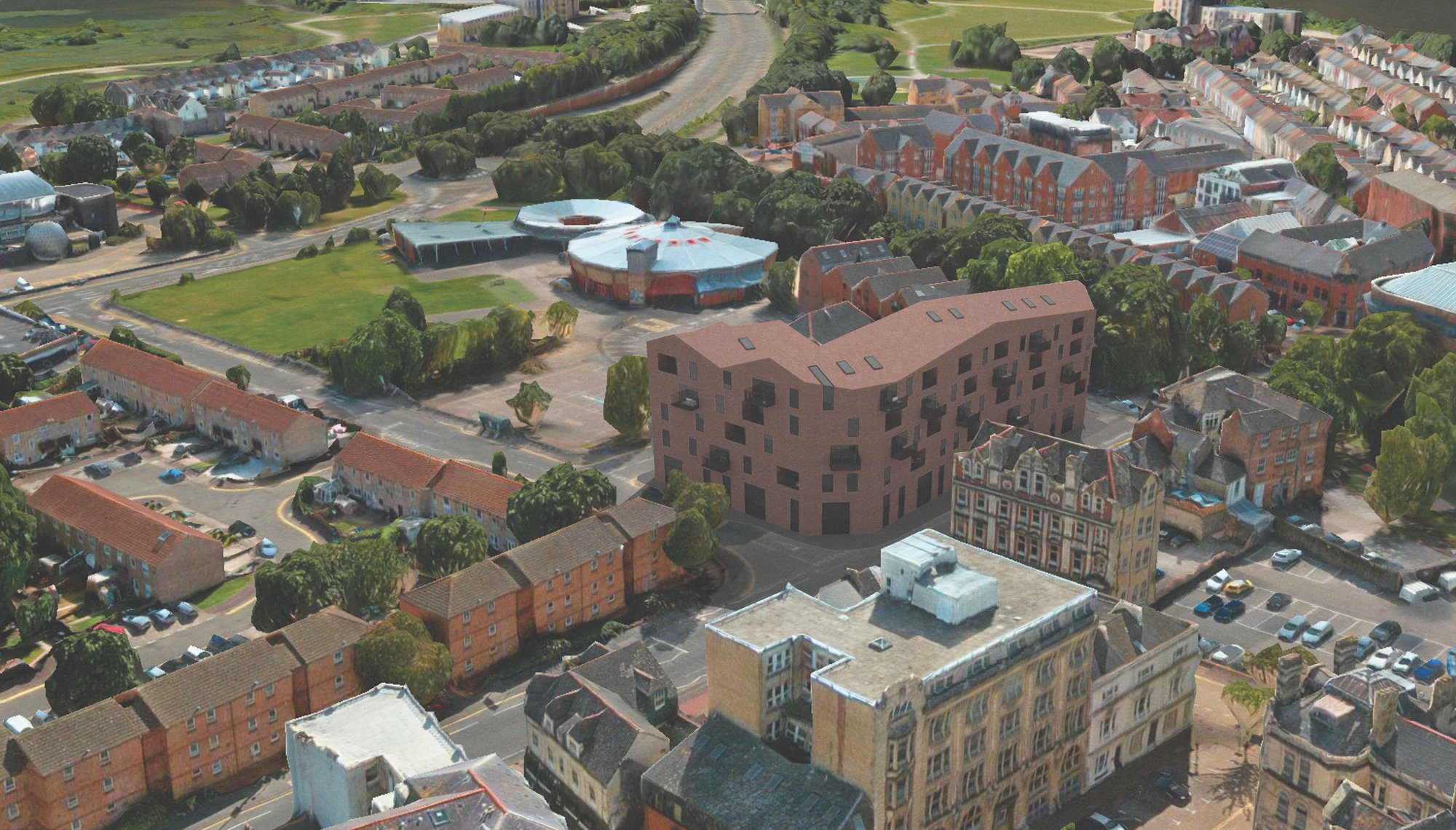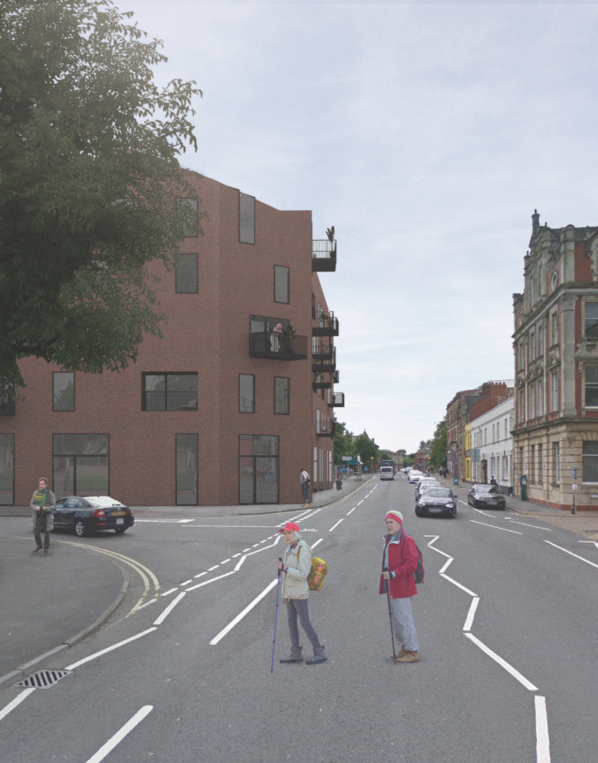 This project develops a central Cardiff site with a mixed used building providing commercial units at street level with residential accommodation above. The proposal is for a medium density building which provides 58 new residential units of a range of scales. The building is a brick building which is a contemporary interpretation of the vigorous Victorian brick architecture in the city. The site is in a conservation area. We are currently developing different options prior to planning.
