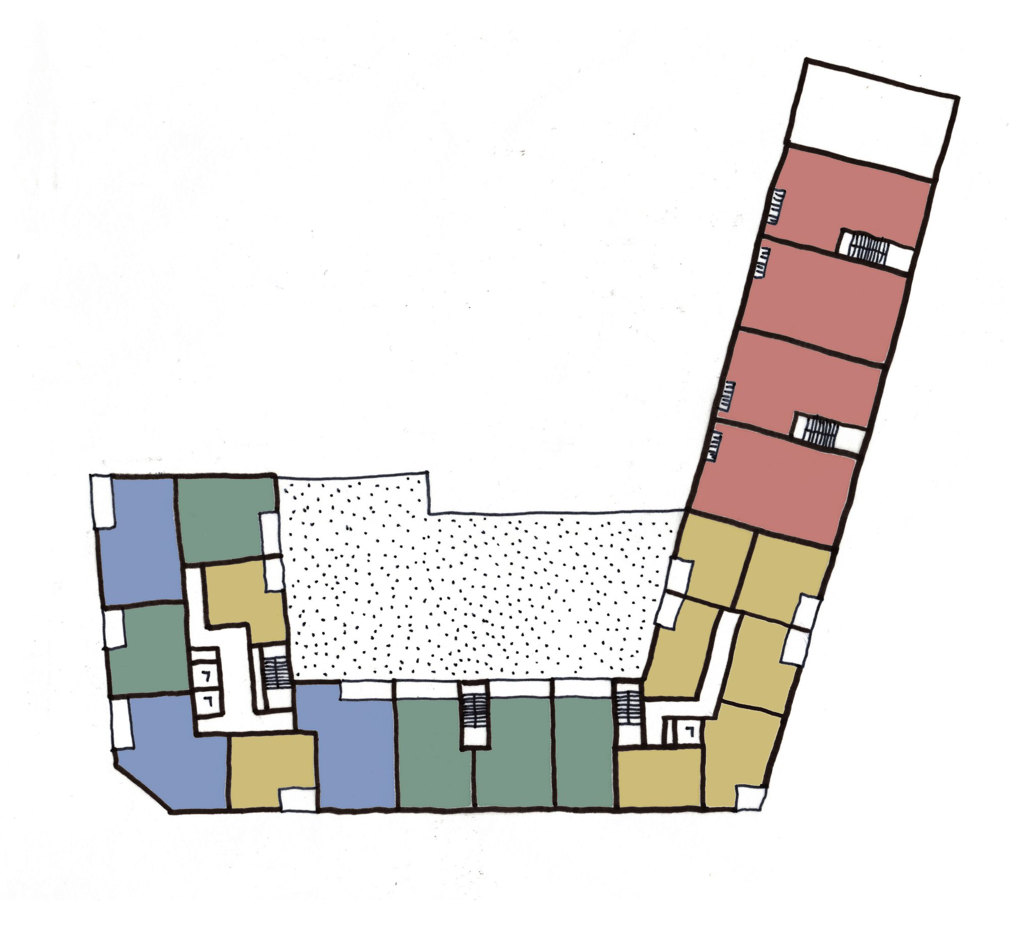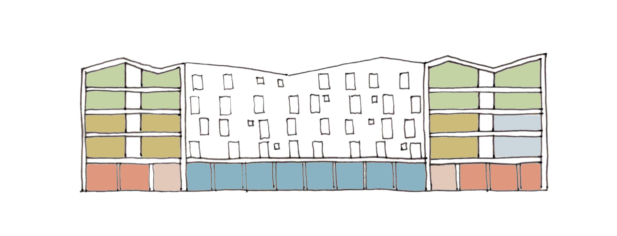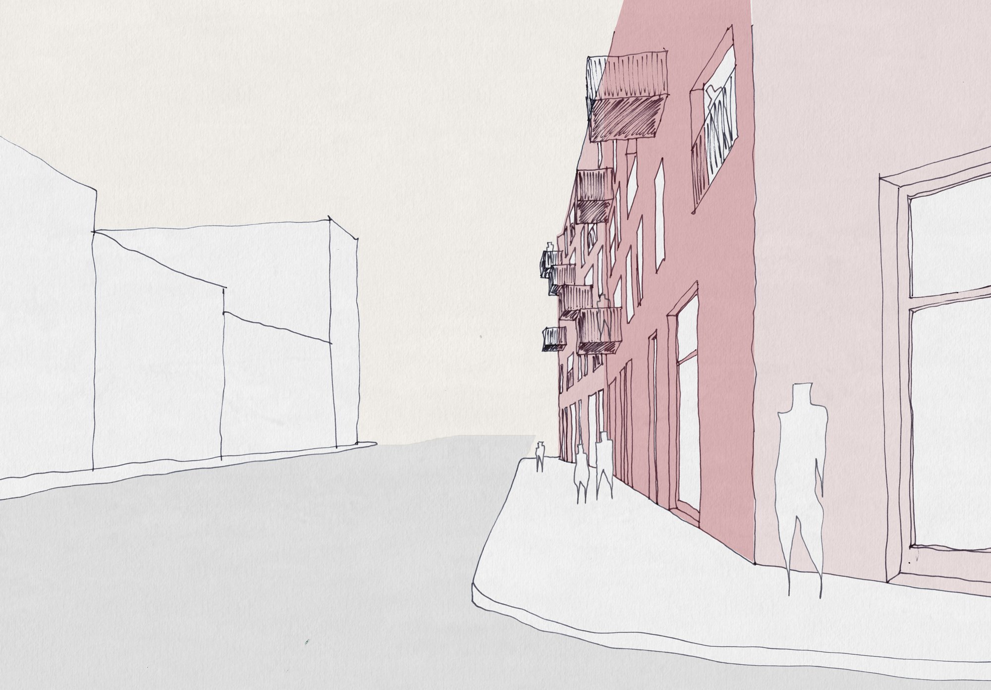 This project develops a central Cardiff site with a mixed used building providing commercial units at street level with residential accommodation above. The proposal is for a medium density building which provides 58 new residential units of a range of scales. The building is a brick building which is a contemporary interpretation of the vigorous Victorian brick architecture in the city. The site is in a conservation area. We are currently developing different options prior to planning.