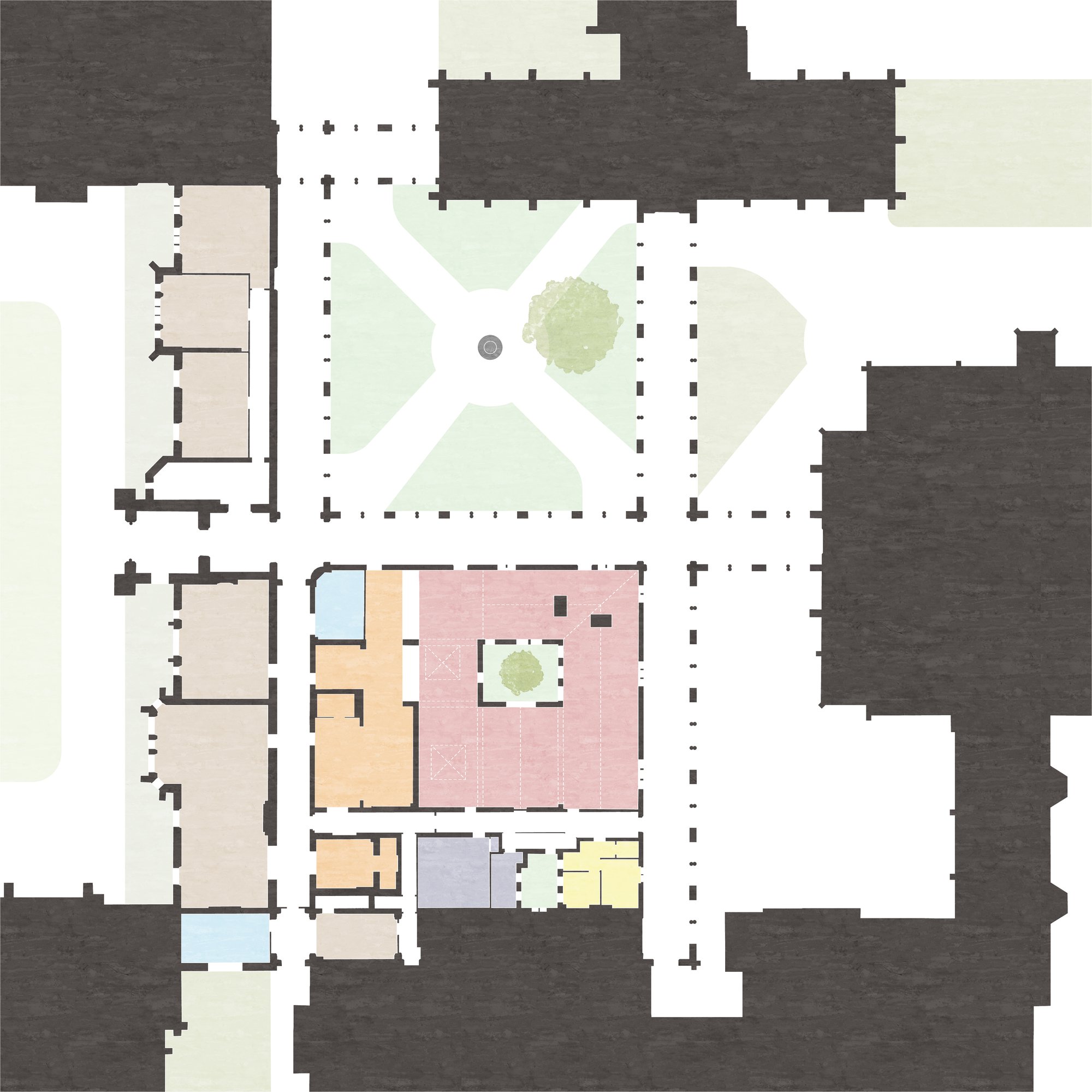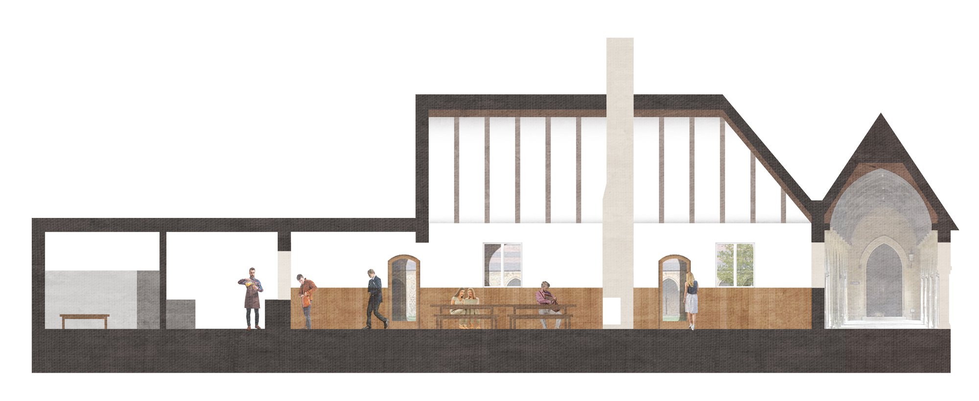 This proposal redevelops a building to create a central dining room and kitchen in one of the school houses, to provide a communal dining place at the centre of the campus.