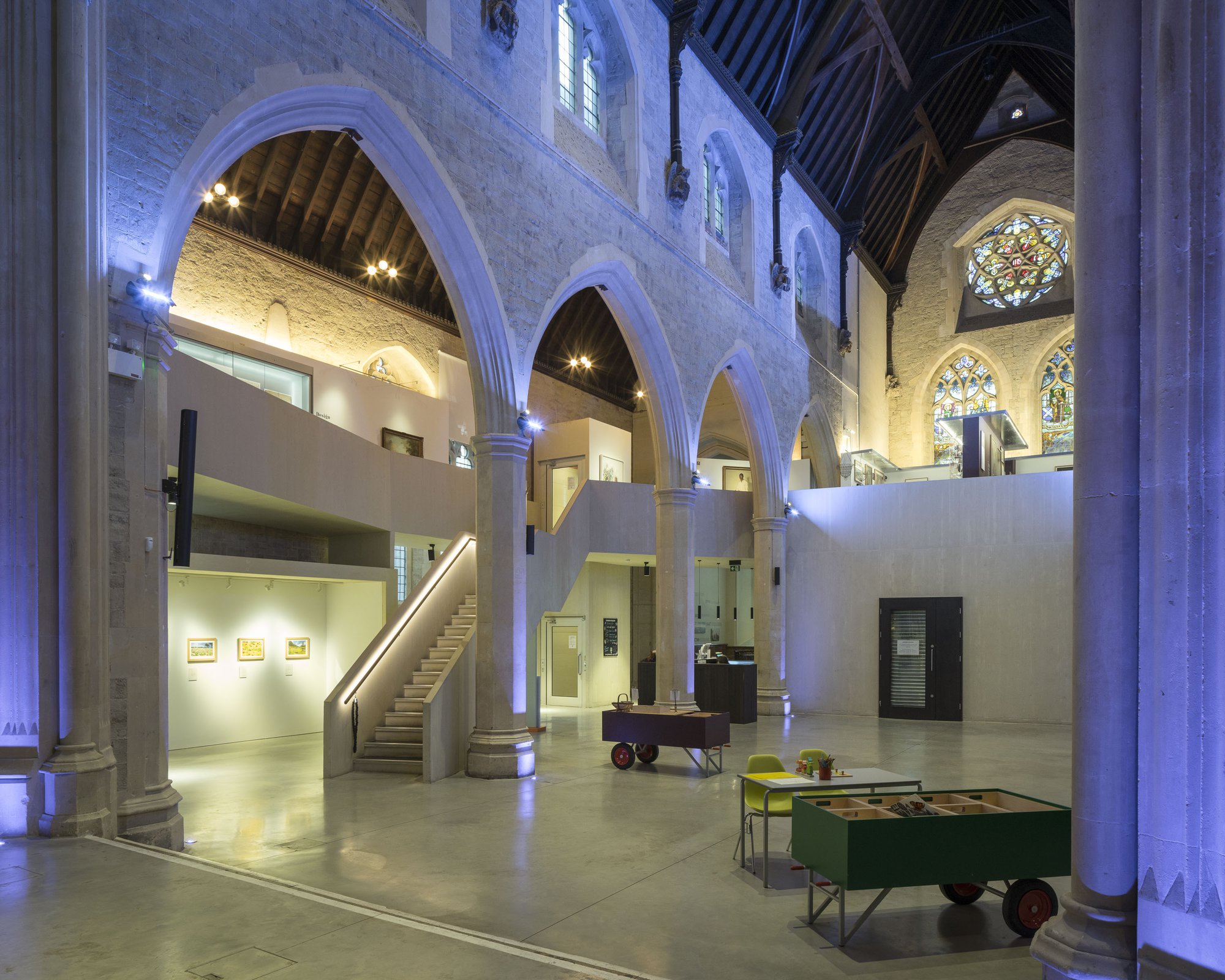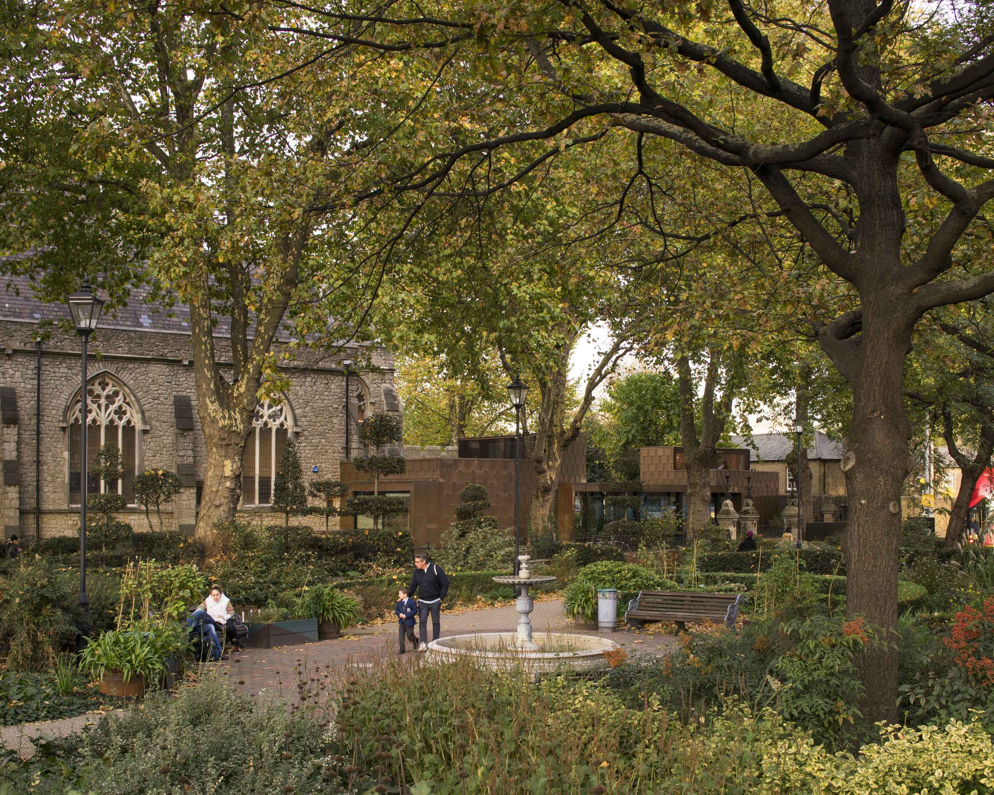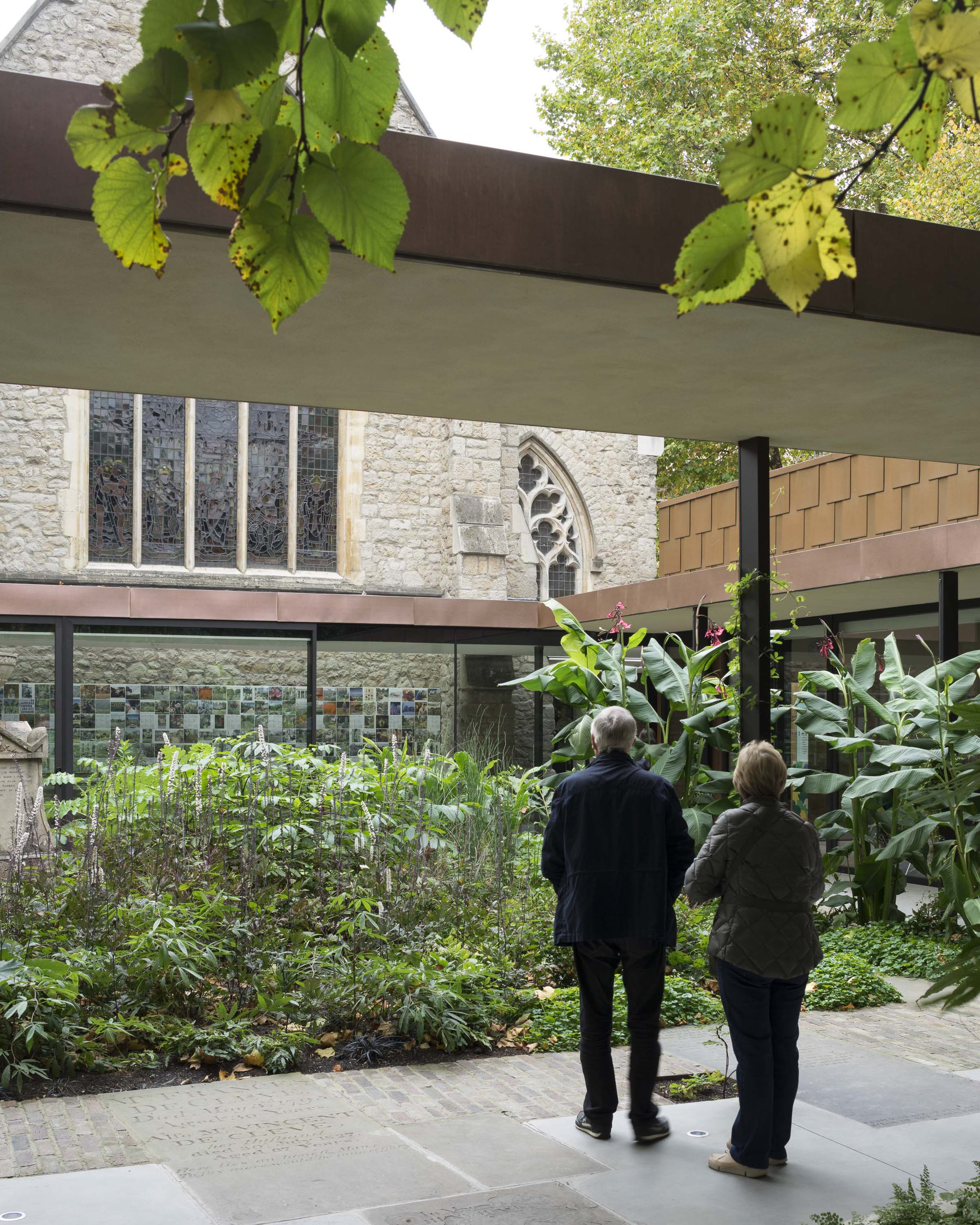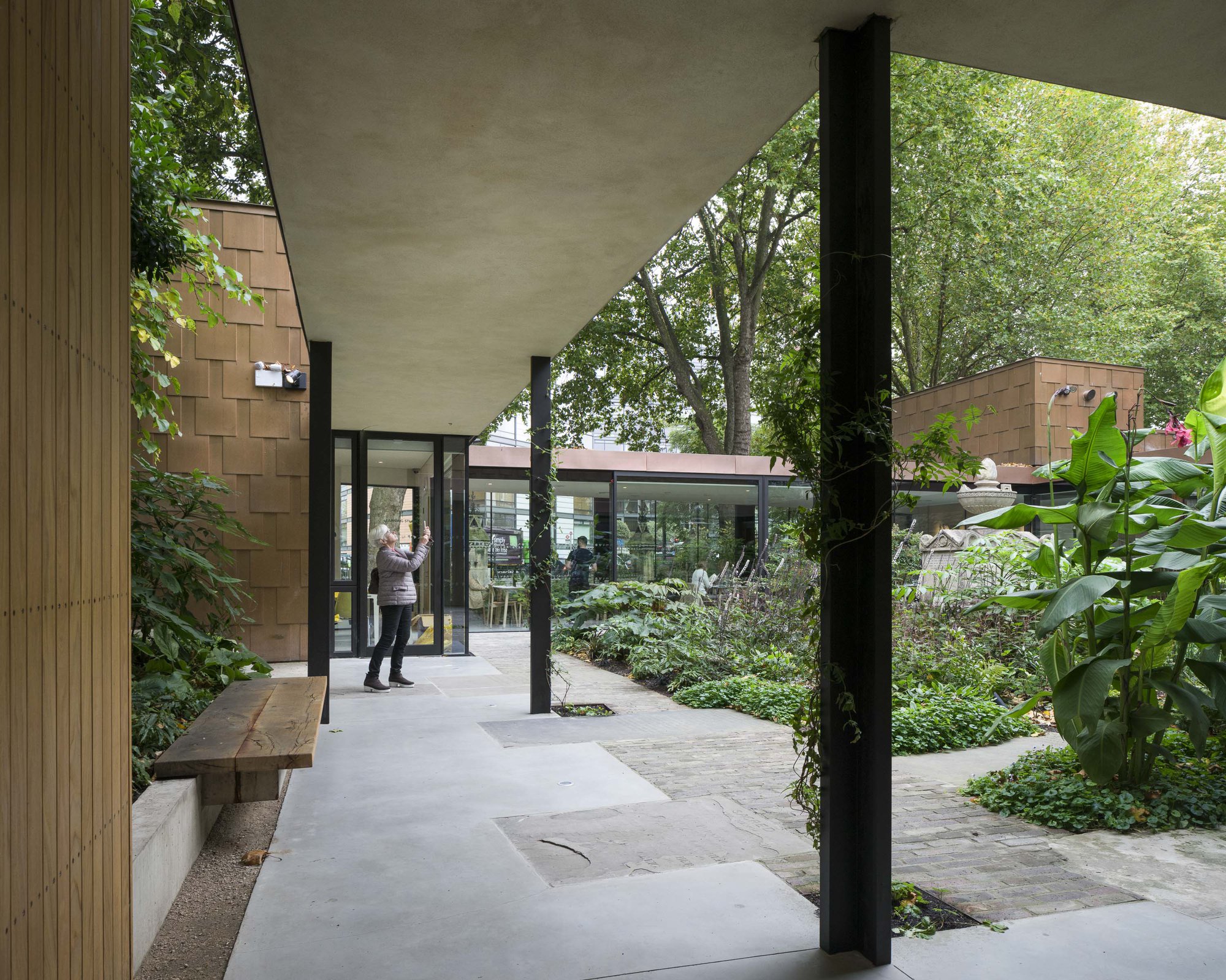 While our Phase I scheme, built in 2008, addressed pressing needs of dedicated spaces within the existing building, Phase II brings the opportunity for the museum to create a public face. Being housed in a church building, and adjacent to Lambeth Palace, the museum is often mistaken for part of the palace. Our new building provides a much-needed urban presence; we have extended the museum as a cluster of copper clad pavilions that form a cloister garden.