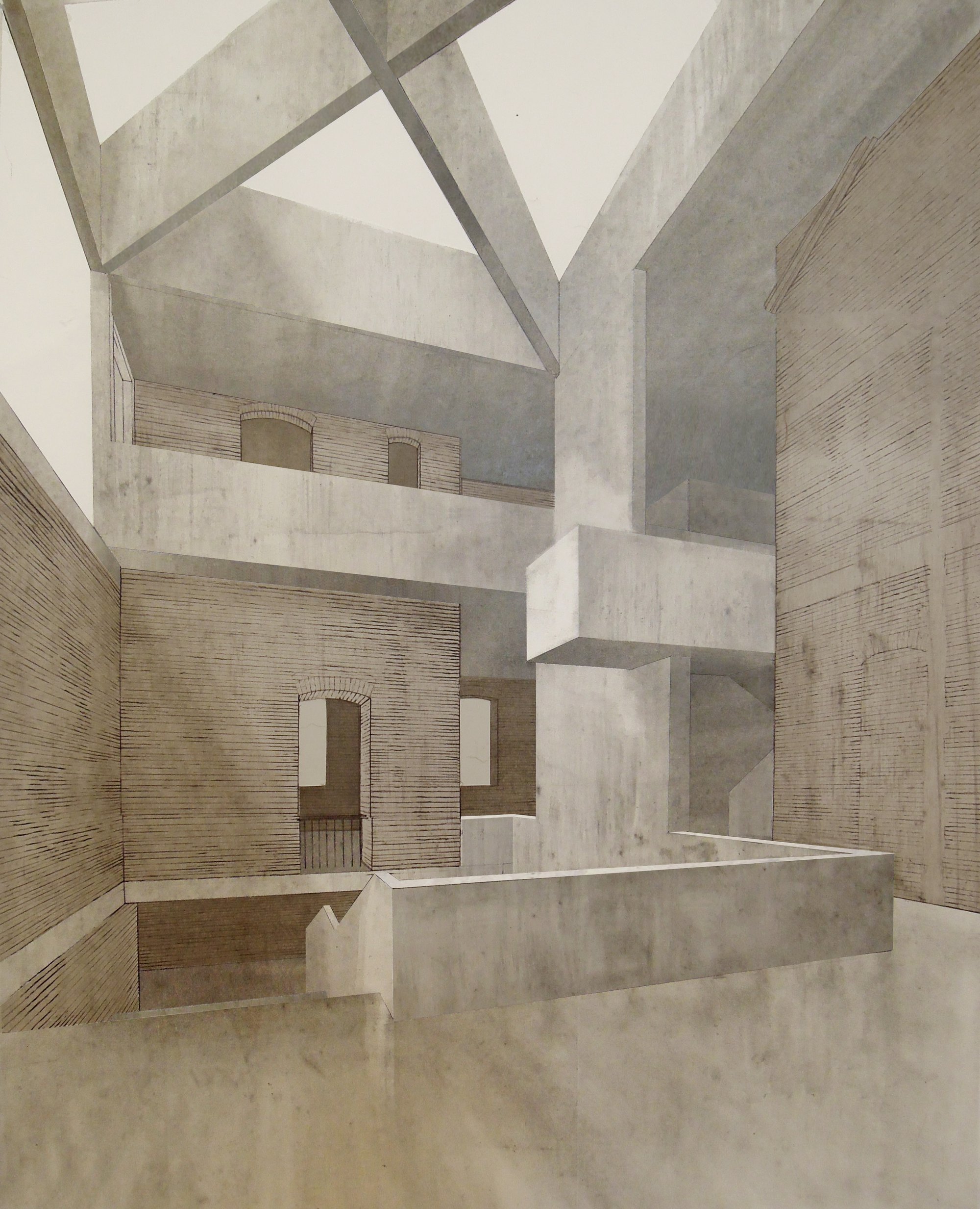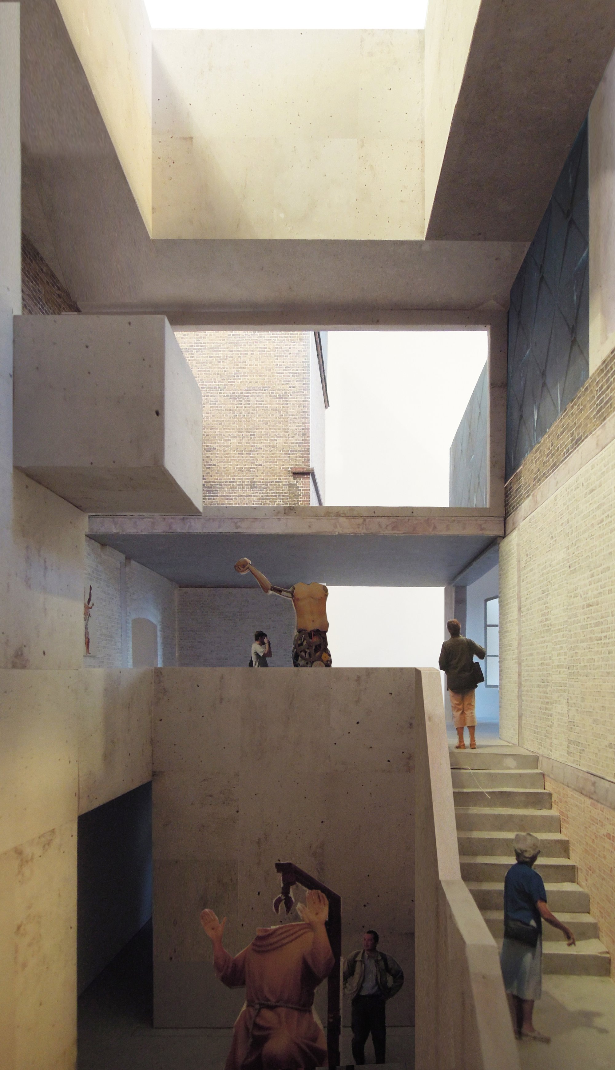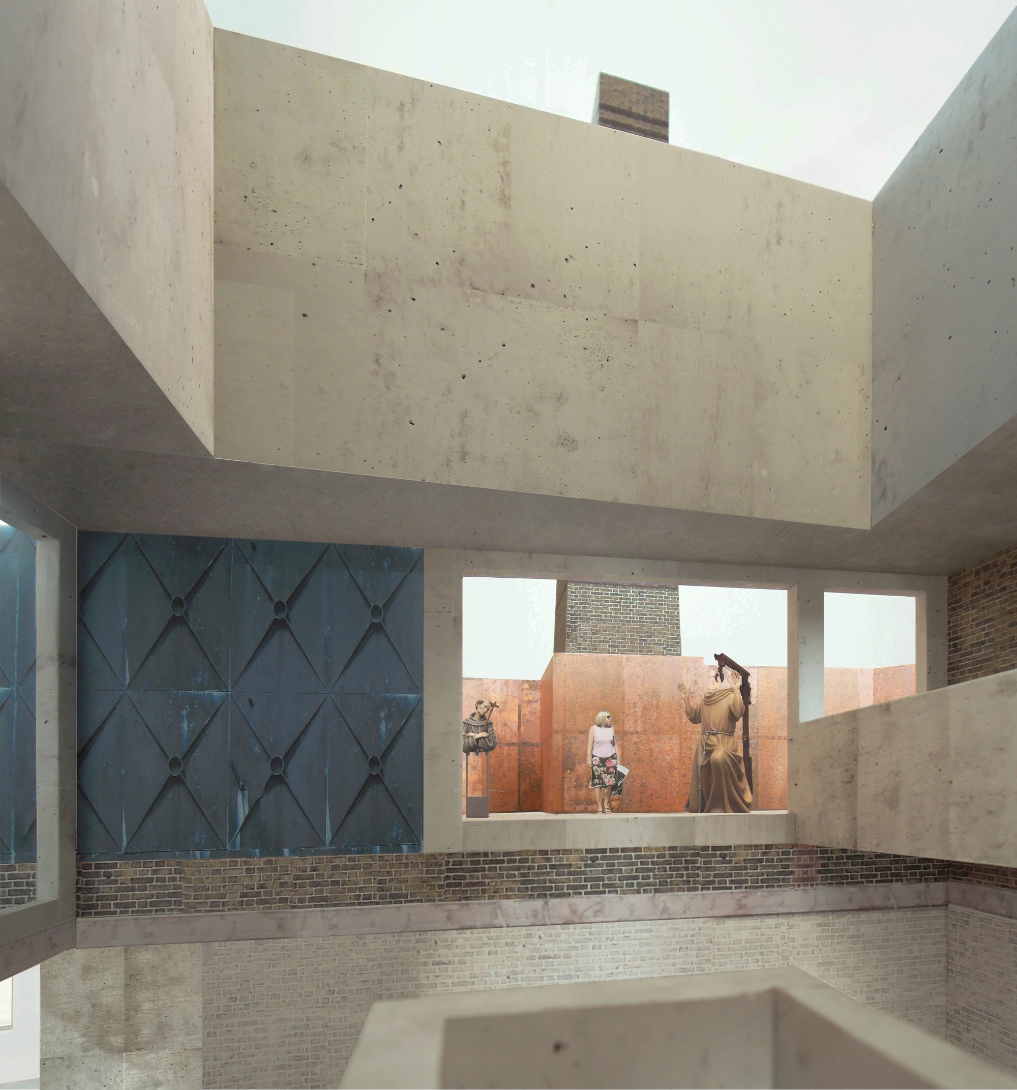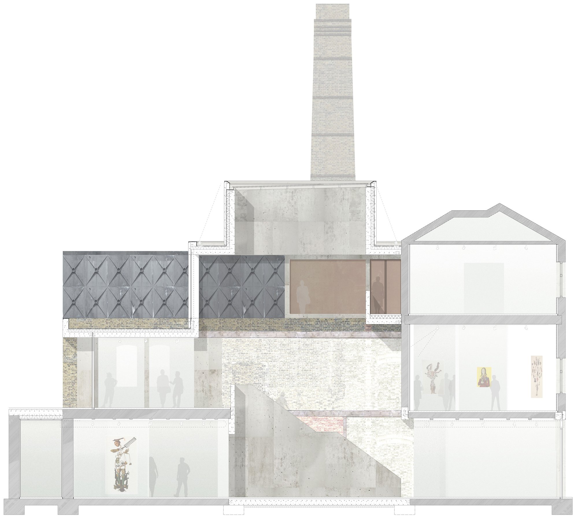 Our project for the new art gallery at Goldsmiths opens up the old bath house building and creates a series of spaces for art and performance. Through careful excavation and cutting, large openings are formed to connect spaces, create a sense of drama, and drop light down through the three floors.