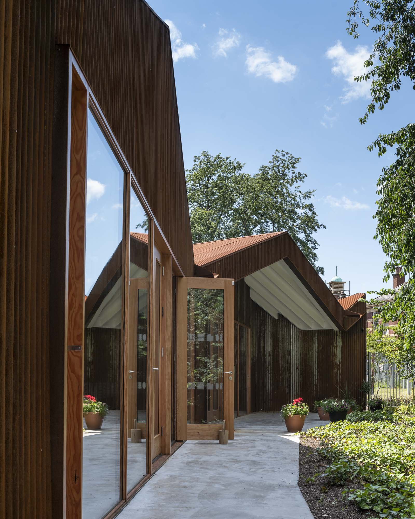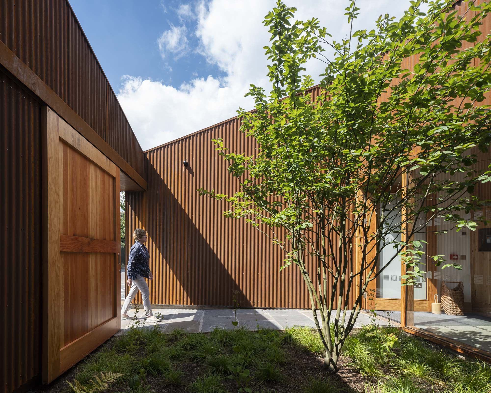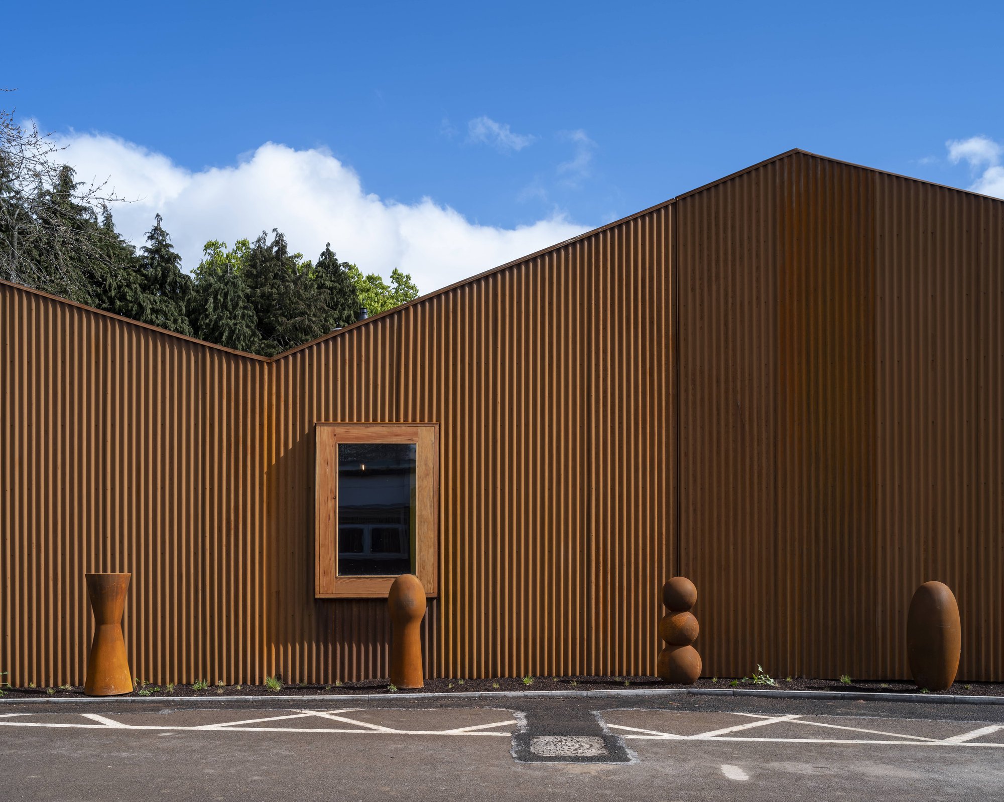 The building’s form and materiality seek to reflect the surrounding topography and to provide a range of uplifting spaces that have a strong relationship to nature. The silhouette of the building echoes the shapes of the local mountains, while the rusty wrinkly steel cladding is the colour of the bracken that adorns these hills and provides a strong character to the area.