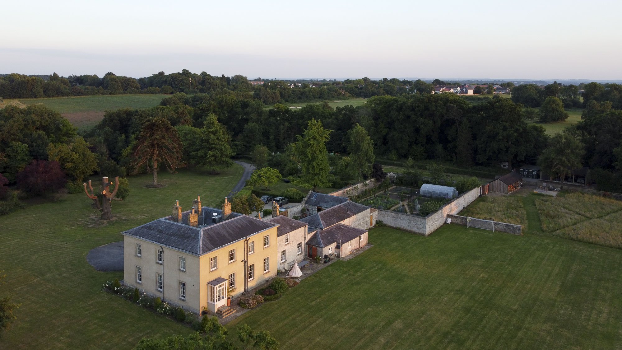 We worked with our clients at Marlwood over a ten year period to develop a strategy that would restore the listed house, adapt the outbuildings and make a stronger connection between the architecture and the landscape. This included restoring the amazing walled garden and making a new cedar greenhouse that came for a diseased tree, felled on the estate. The walled garden is now in production and a woodland management scheme generates timber for heating.