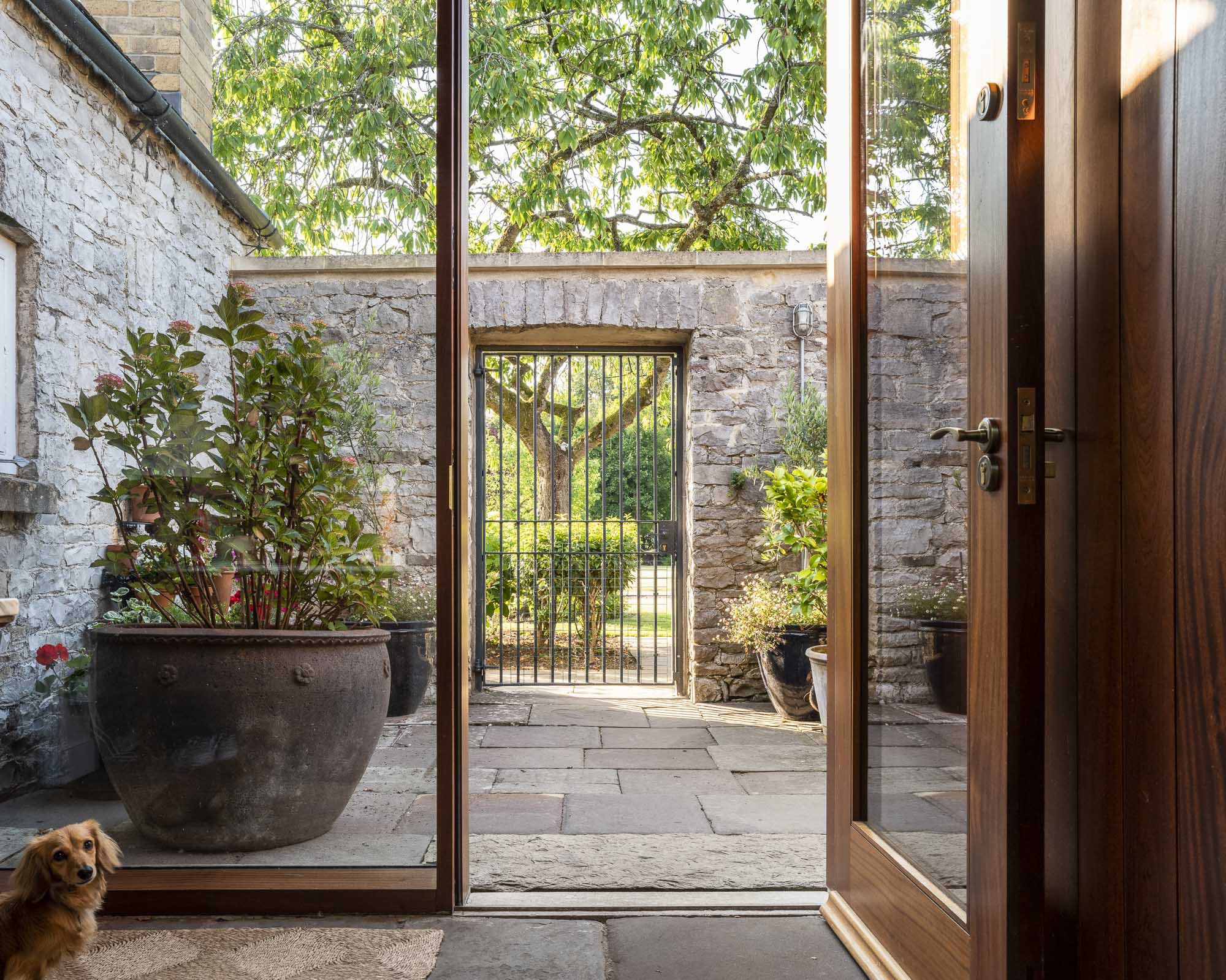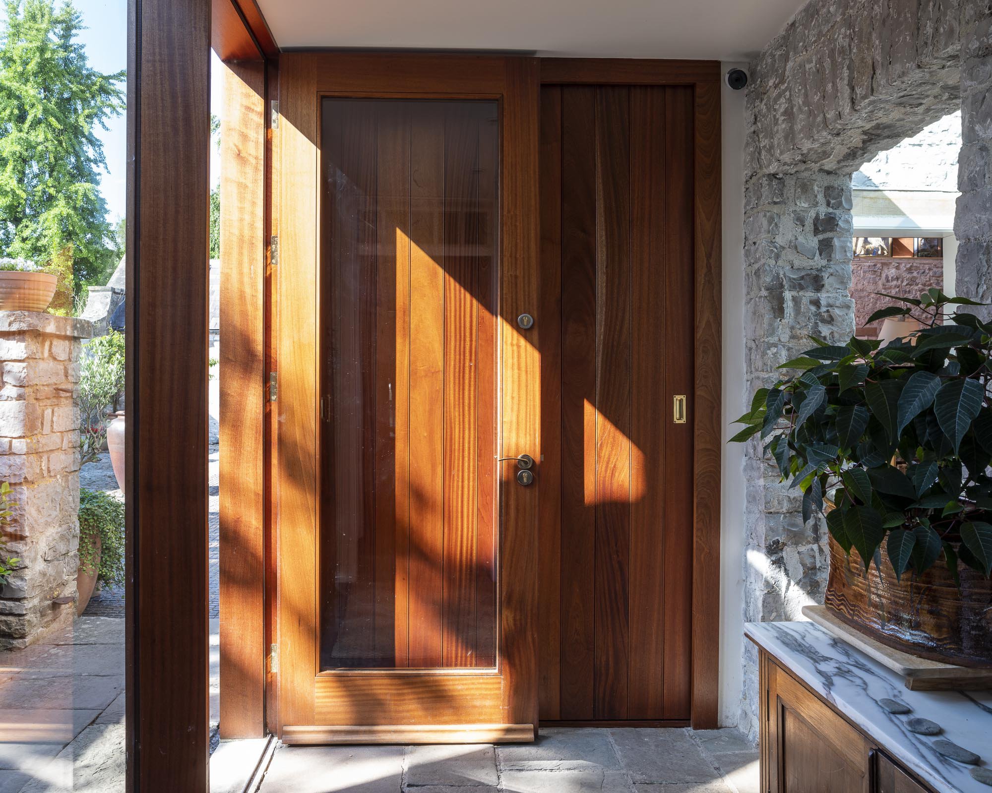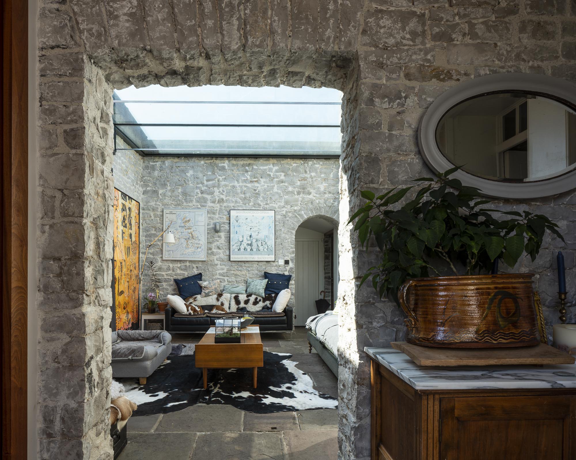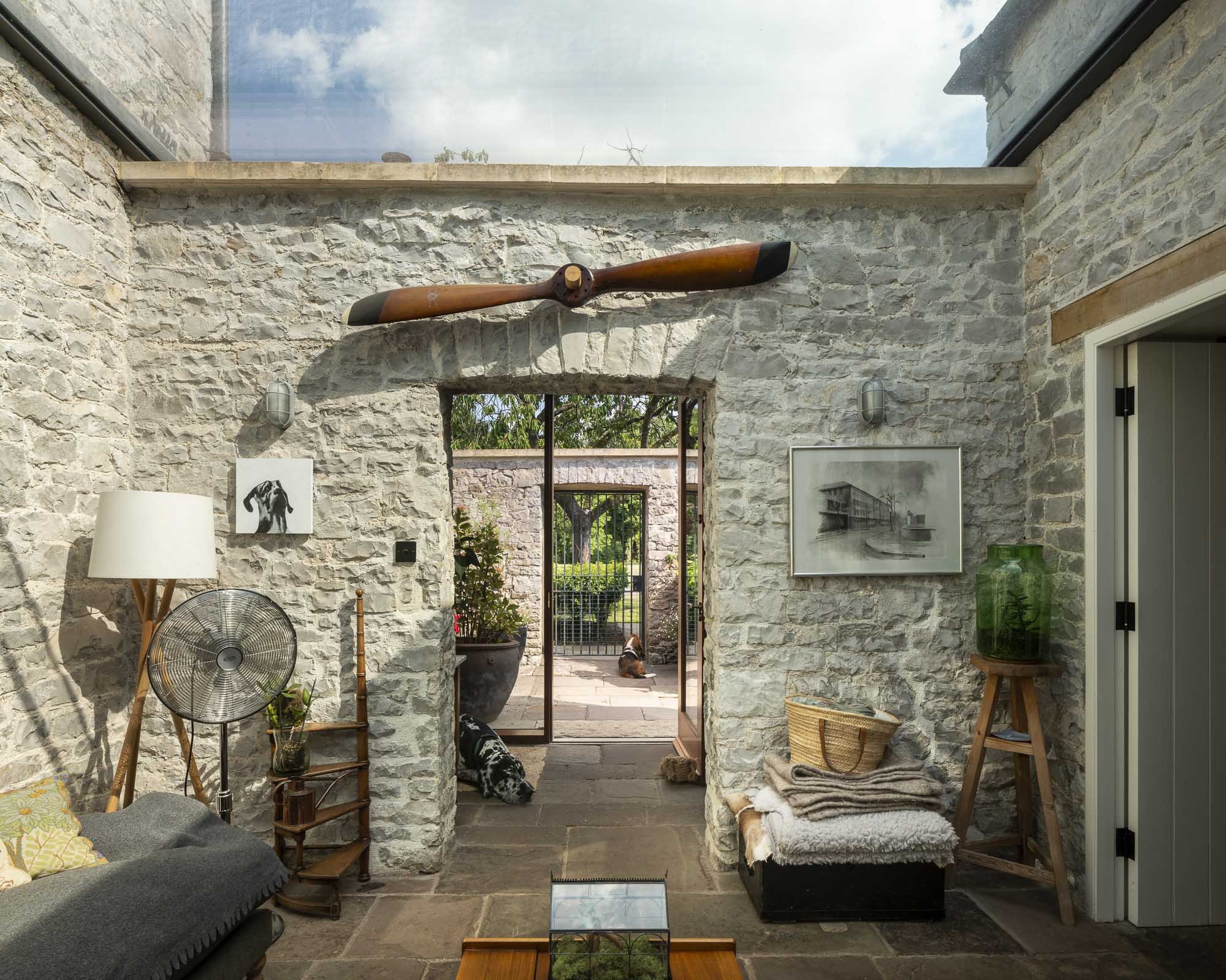 We renovated and converted the outbuildings to create extra accommodation for the family and their guests. The addition of a glazed room creates a light filled living space at the heart of this new accommodation.
