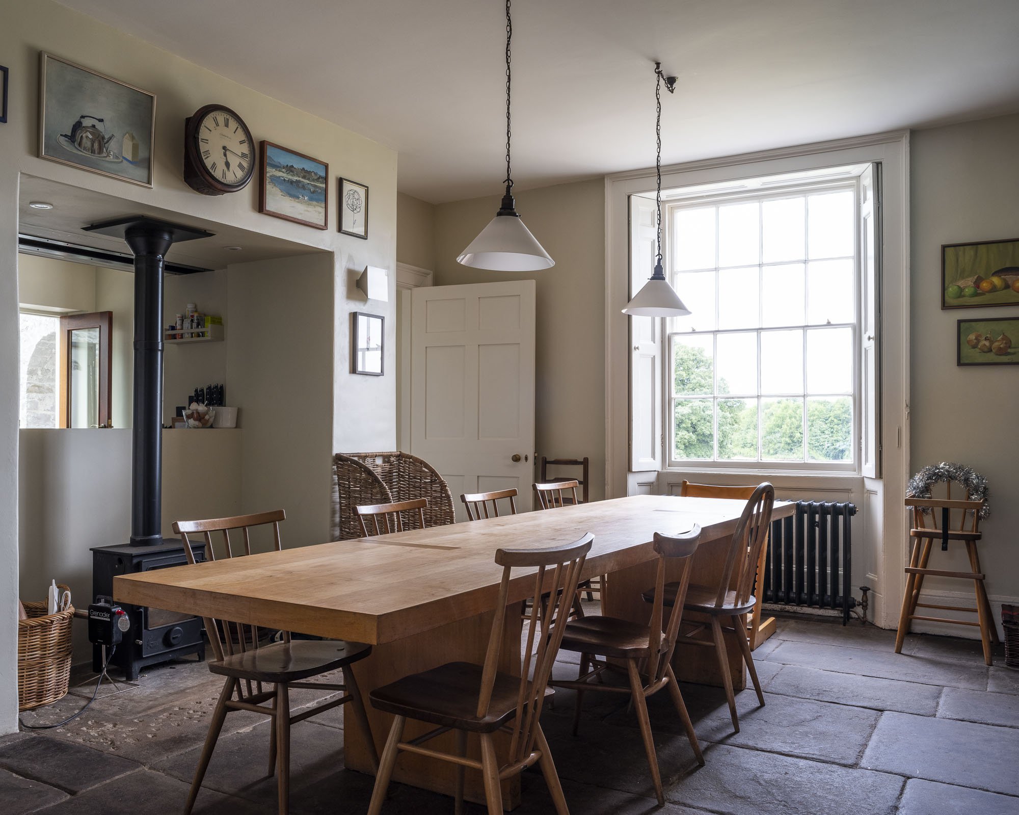 This ambitious project sits between a restoration project and an environmental research project, as we worked towards reducing the carbon footprint of this early Georgian house. The house is Grade II listed, built in the late C18/early C19. It features a Tuscan column porch. We have restored and refurbished the house and outbuildings for family life, with techniques and materials appropriate to working with sensitive heritage projects.