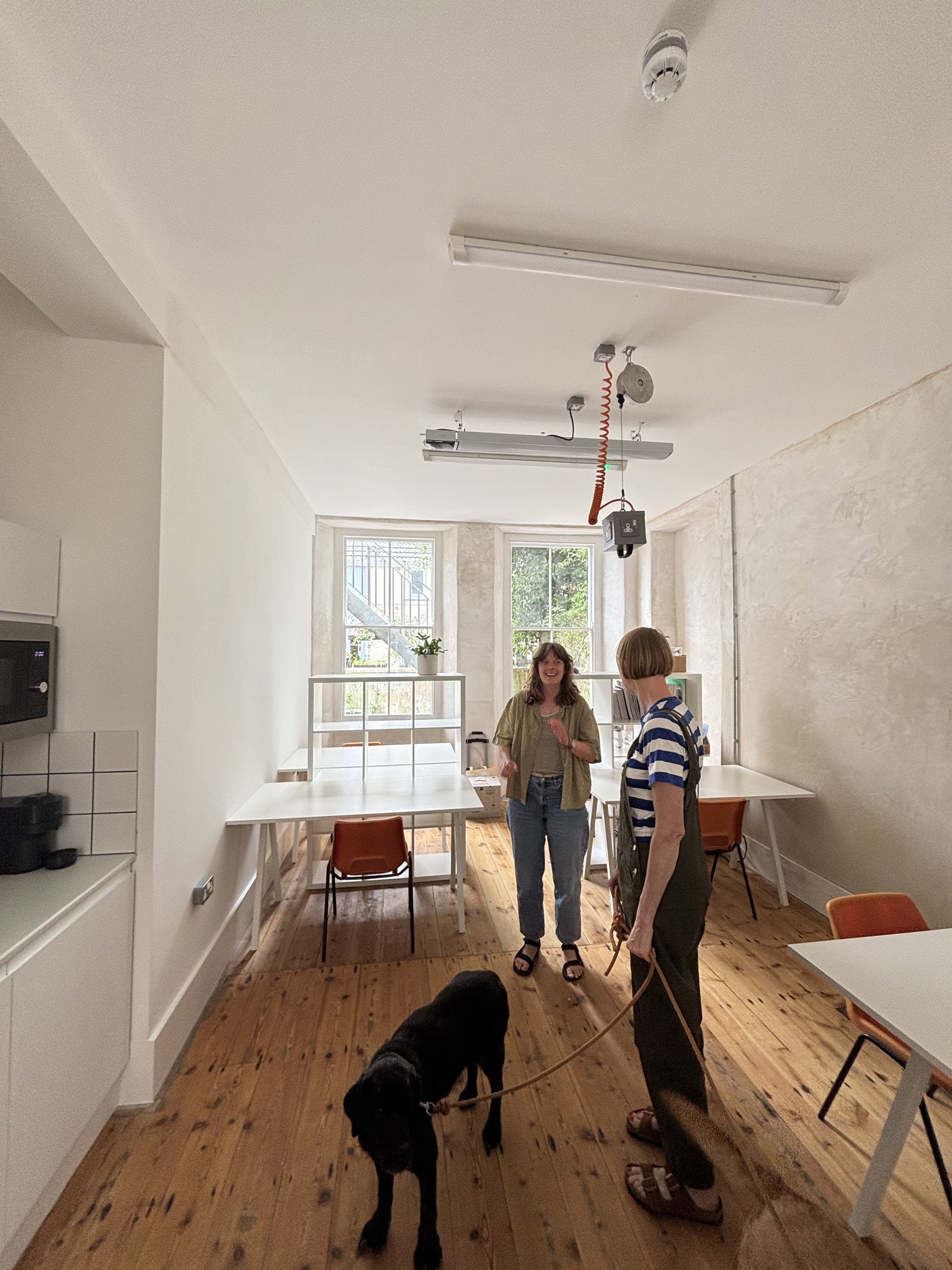 In 2024, we refurbished the School Room to create a public art room, a shared workspace for creative freelancers, and 7 individual artists’ studios. We restored the building fabric and introduced substantial environmental performance upgrades, including using a locally-made insulating lime plaster.