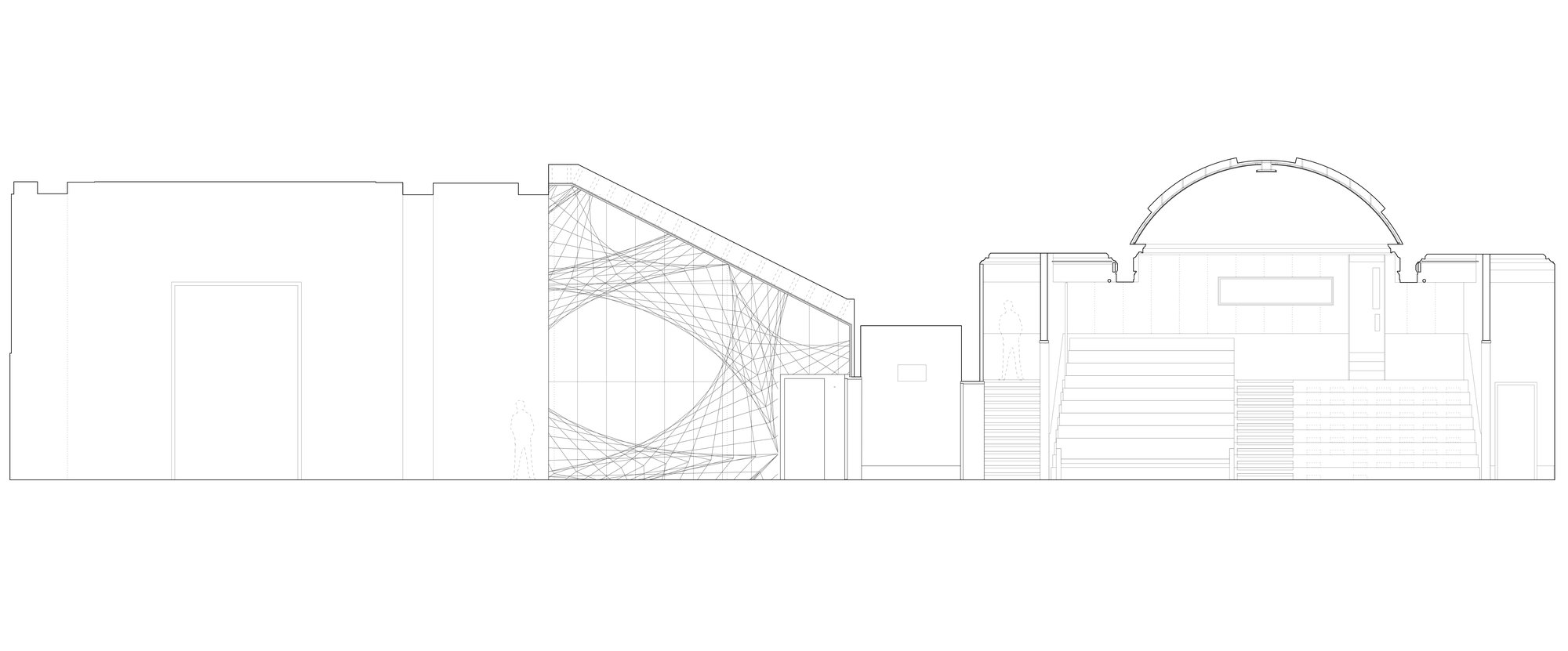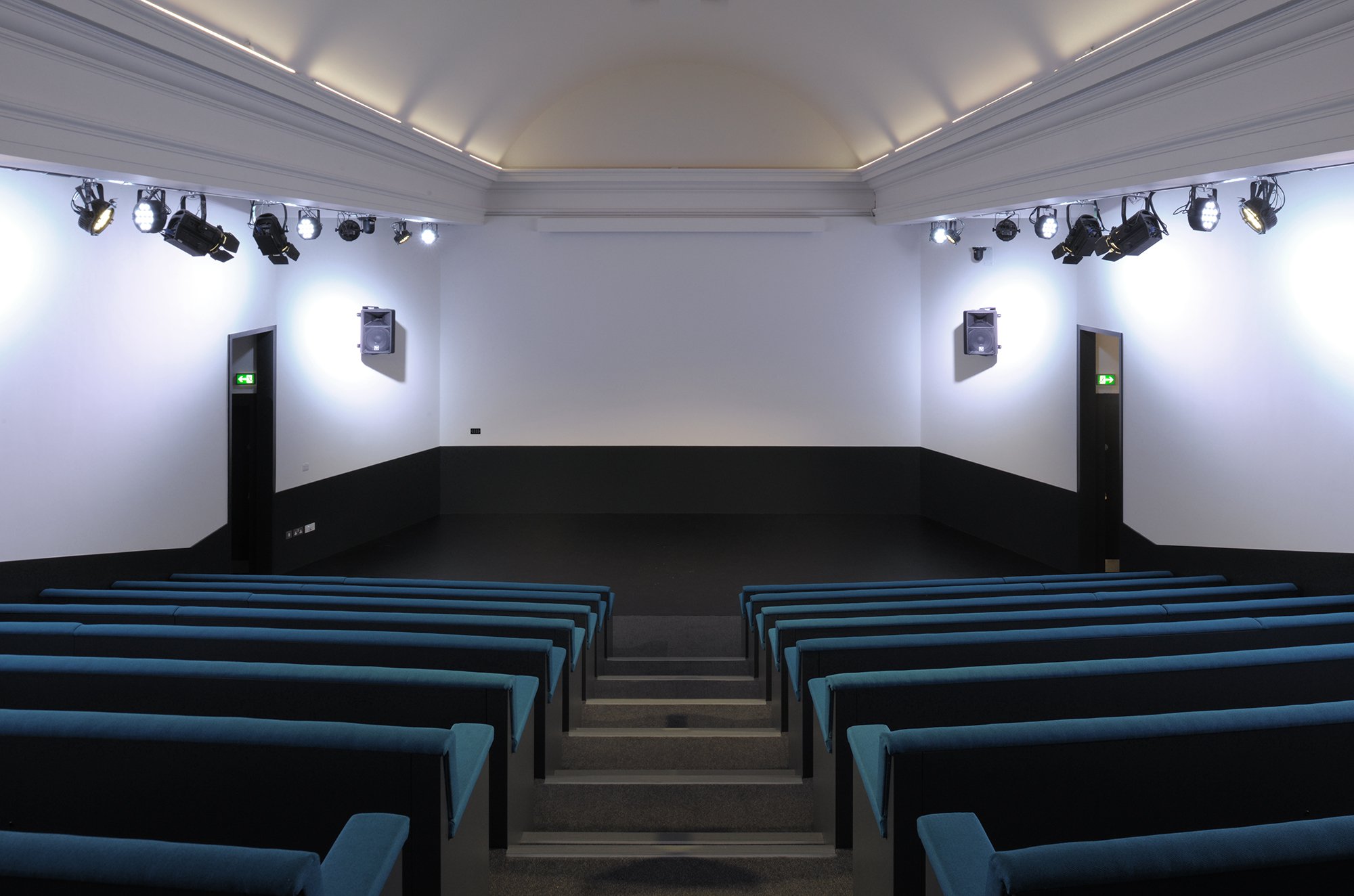 Inside the auditorium, we uncovered the barrel vault of the space, with new wall linings and new raked bench seating.