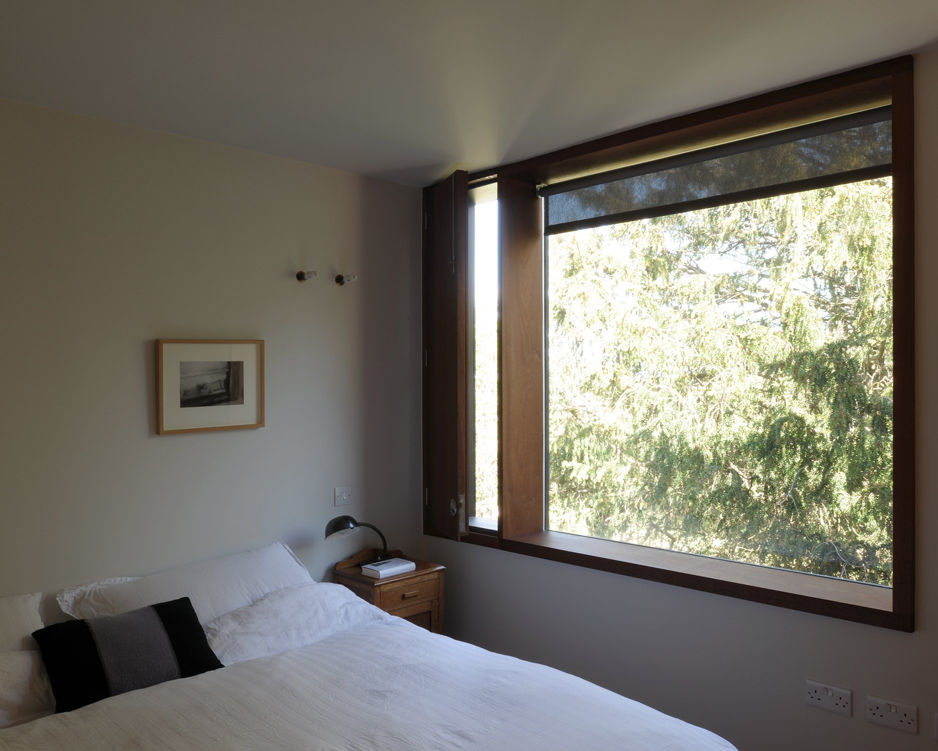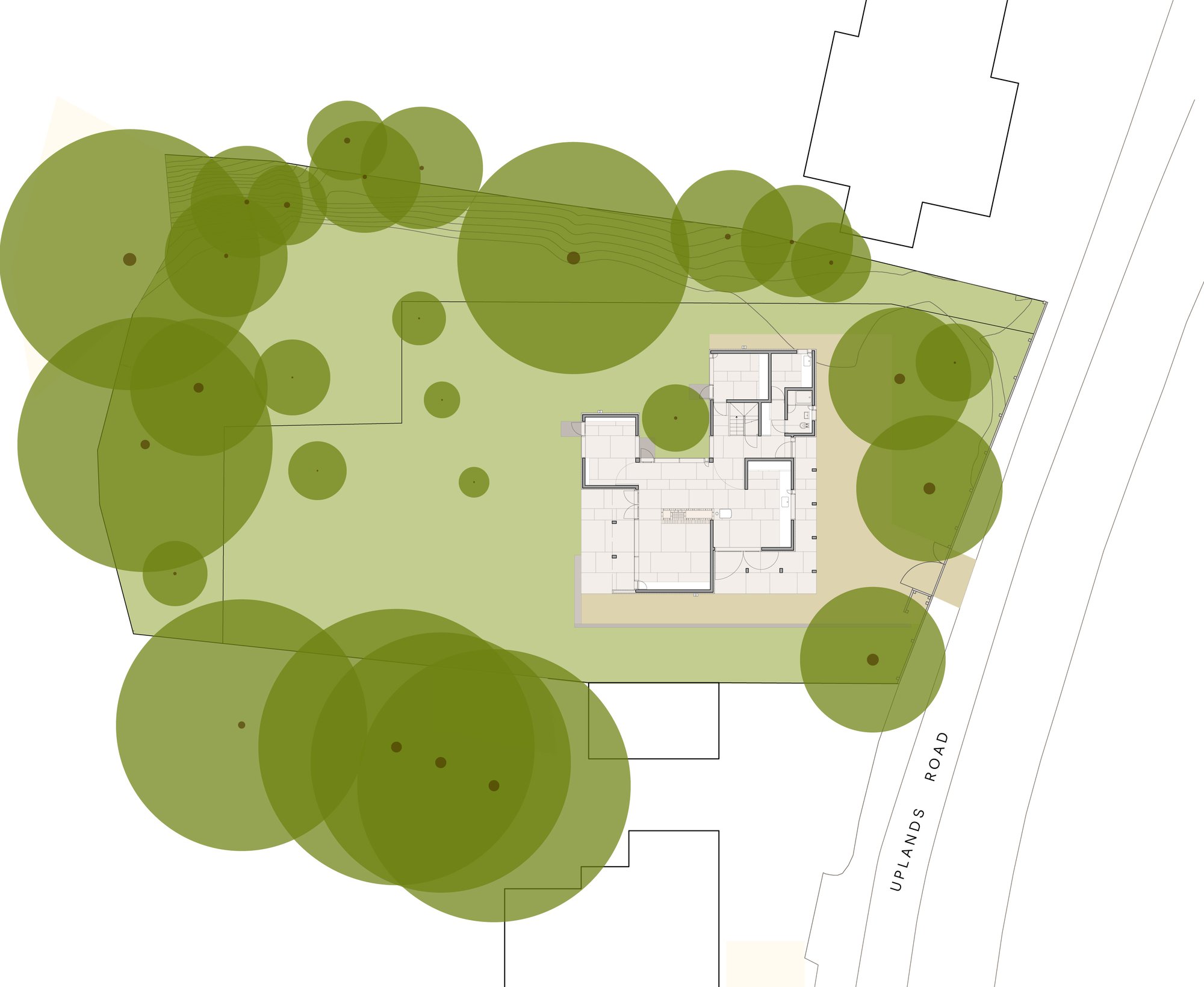 The location of the established fruit trees informed the plan of the house. Retaining the sense of enclosure within the site, while bringing a view of the sea from the upper floor, and responding to the particular placement of the fruit trees, generated the placement of rooms and spaces on the site.