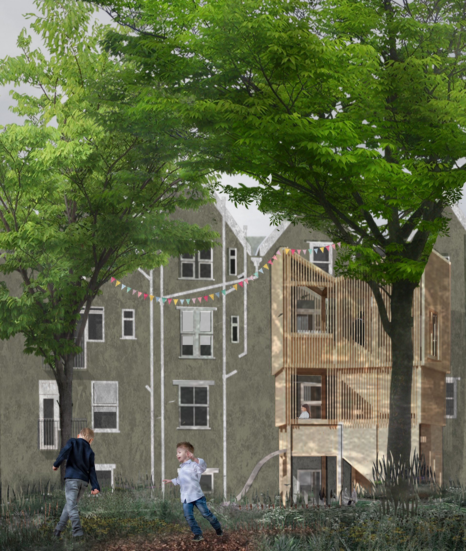 The proposed garden stair is a light-weight and playful timber structure which allows the nursery children to move easily between inside and out of 29 Victoria Street. The stair is designed as an open solid timber piece of construction which respond to the construction of the merchants’ houses.
