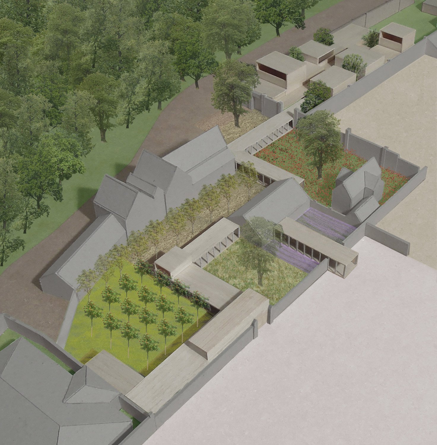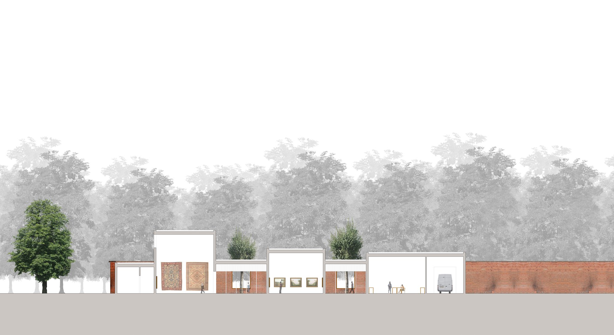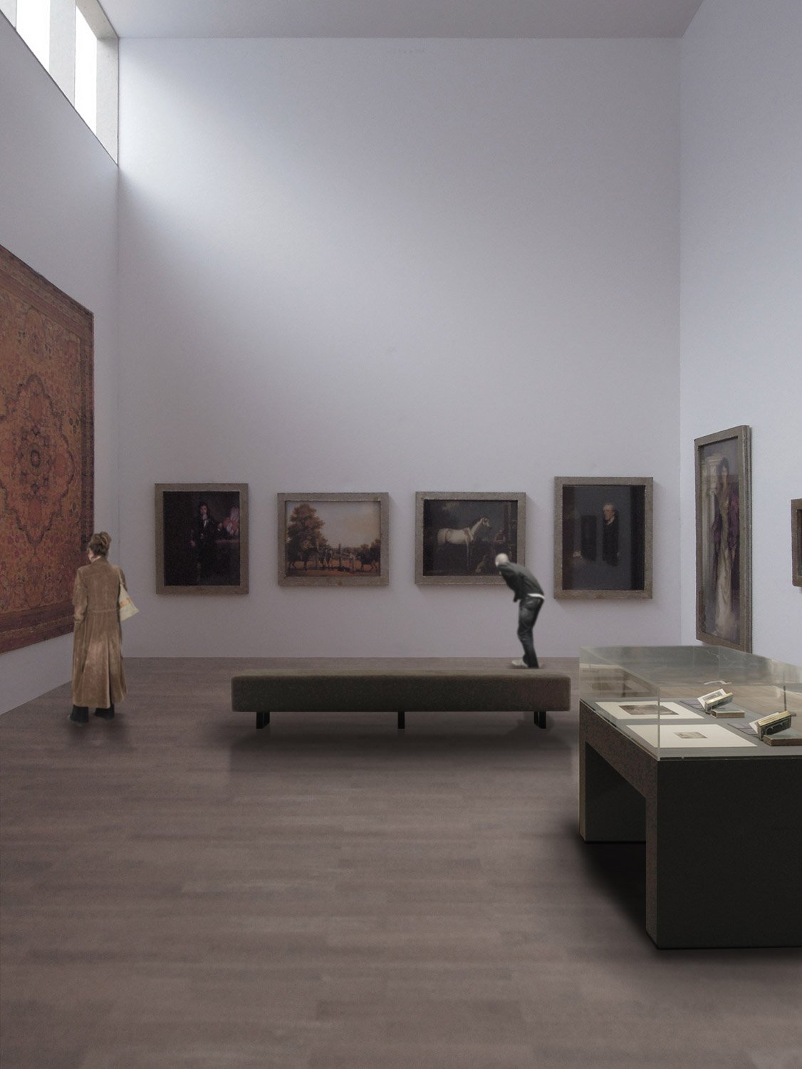 This proposal for an invited competition places a new art gallery within the existing walls of a horse gallop in the grounds of Welbeck Abbey in Nottinghamshire, housing the Portland collection.