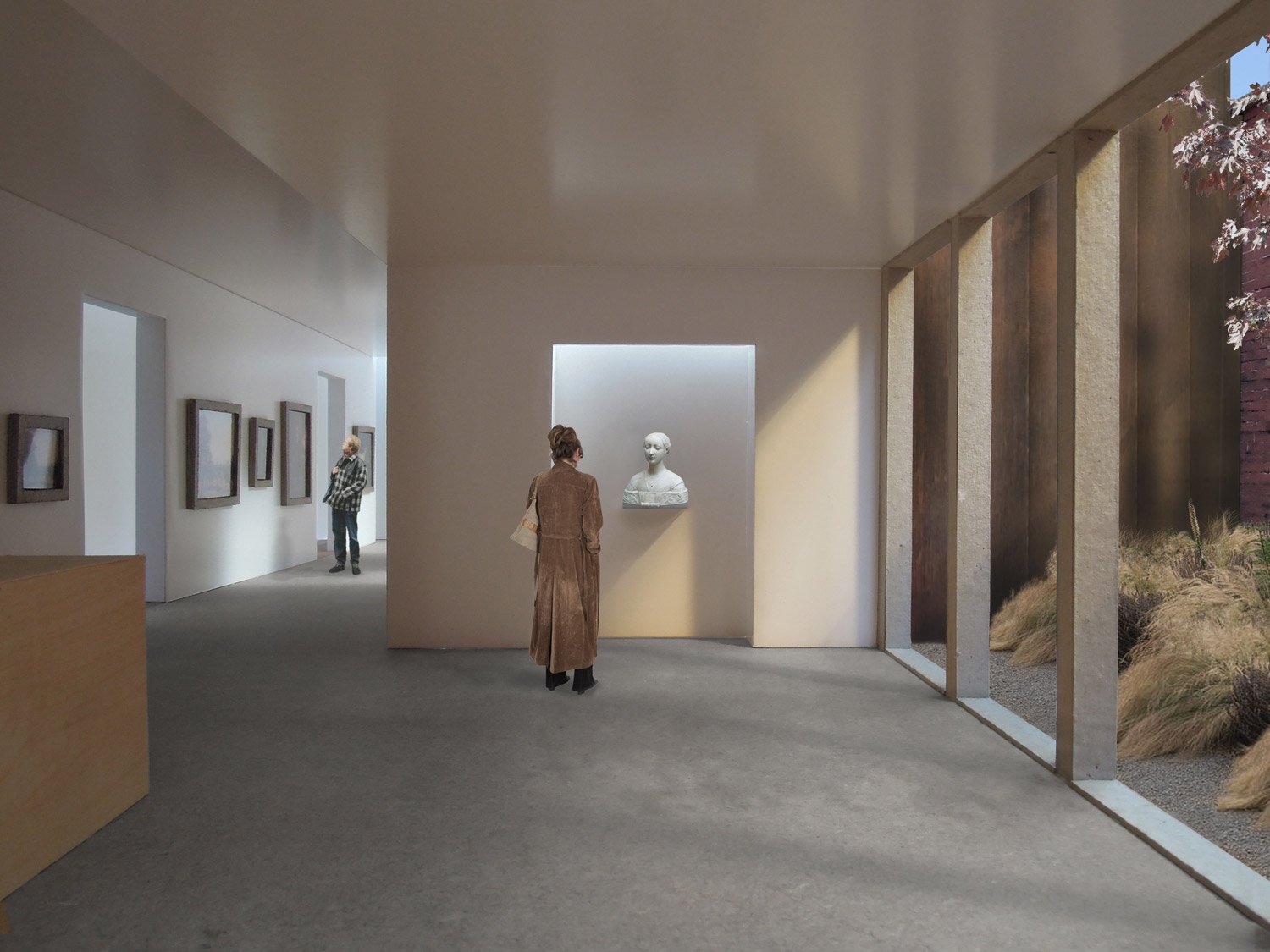The galleries are daylit and provide a range of spaces, of different scales and material character, which can be curated individually or as a series. The central corridor overlooks the courtyard gardens and provides a place for reading and studying.